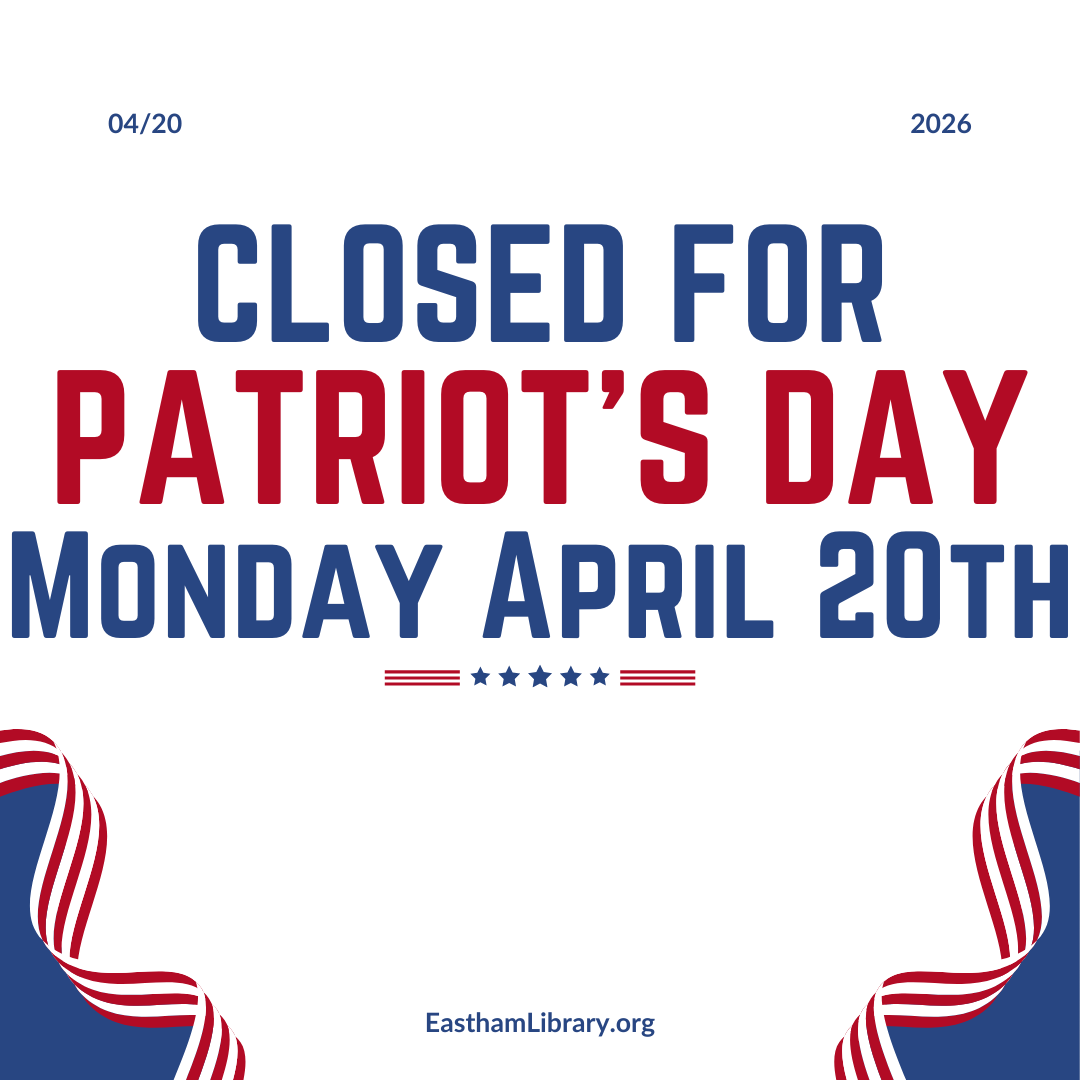 The Library will be closed on Monday April 20th in celebration of Patriots Day. Stock up on books ahead of time 🙂